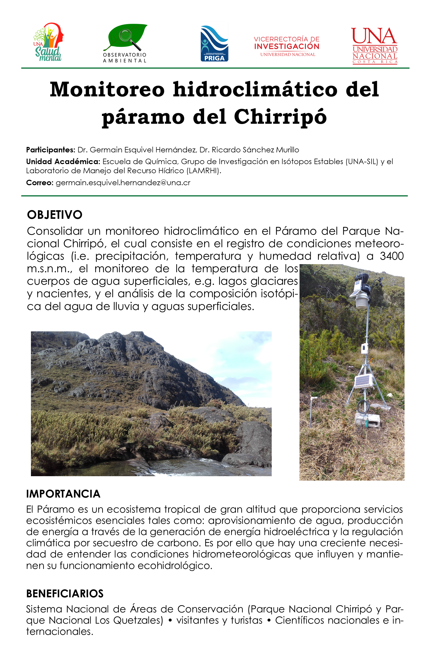Monitoreo hidroclimático del páramo del Chirripó